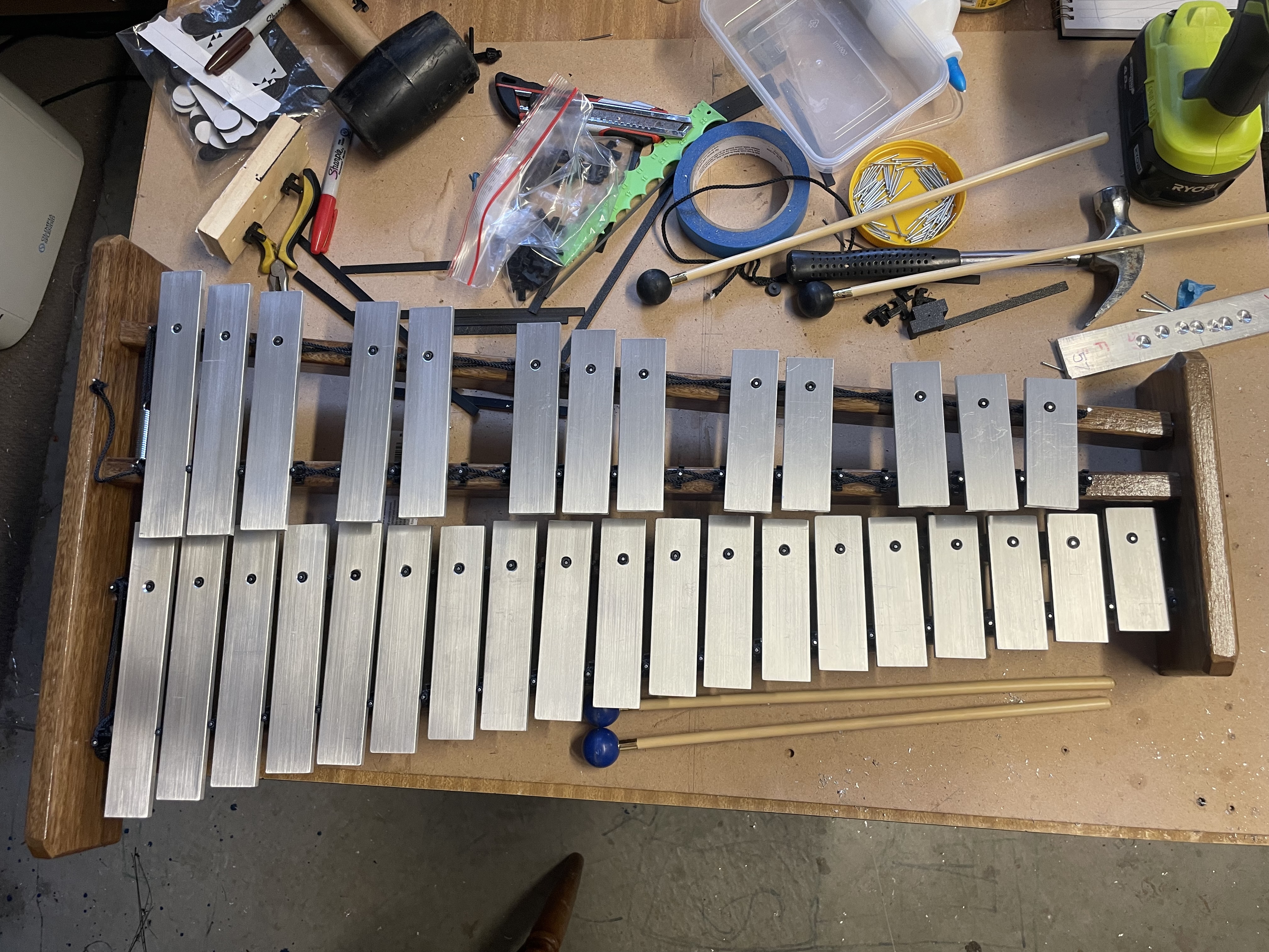 I constructed this glockenspiel in late 2024. The bars are aluminium and the frame is tallowwood (Eucalyptus microcorys).